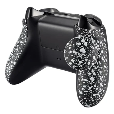eXtremeRate Textured White Back Panels, Comfortable Non slip Side Rails, 3D Splashing Handles, Game Improvement Replacement Parts for Xbox One X & S Controller
