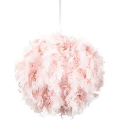 Contemporary and designer-look non-electrical pendant light shade with open top and bottom. Features unique and eye-catching 100% real natural pink feather shade. Creates a stunning effect when the light shines through. The product dimensions are: Height - 20cm, Depth - 25cm, Width - 25cm. We recommend blowing the feathers with a hairdryer on a cold setting to fluff up the feathers after being packaged tightly for protection. Maximum wattage allowed is 40w. Please note that ceiling rose and cable is not included - pendant shade only being sold. Complete with shade reducer ring allowing for most lamp bases - B22/BC, E14/SES and E27/ES. Light bulb not included., Weight: 0.6172943336 Pounds, Manufacturer: Happy Homewares