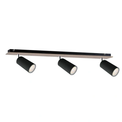 Eye Ceiling Spotlight Bar Black, Wood, 50cm, 3x GU10