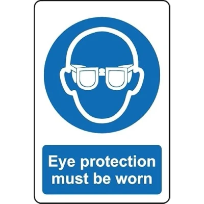 Eye Protection Must Be Worn Safety Sign Self adhesive sticker 200mm x 150mm Remove backing film and apply to dry, smooth, oil free surface. Digitally printed and laminated for extra durabillity