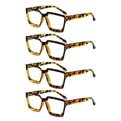 Eyekeeper 4 Pack Eyglasses Women Oversize Frame Ladies Tortoise Frame Non-Magnification Glasses