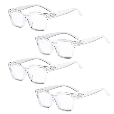 Eyekeeper 4 Pack Ladies Reading Glasses Oversized Square Design Readers for Women,Transparent +3.00