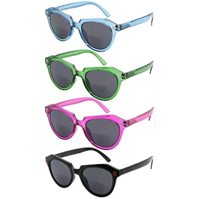 Eyekeeper Bifocal Sunglasses Women 4-Pack Ladies Bifocal Reading Sunglasses Cat-Eye Style +1.00
