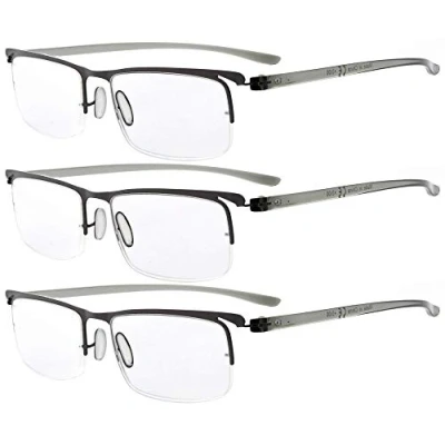 ▲ FRAME HEIGHT - Men's reading glasses without spring hinges. Frame height about 1.26 inches (32mm). ▲ HALF-RIM DESIGN - Lightweight half-rim cheater glasses are suitable for different face types. ▲ METAL FRAME AND CLEAR LENSES - The frame is made of quality metal. The lens are crystal clear. ▲ 3 PACK READERS FOR MEN - You can keep a pair in the bedroom, a pair in the living room, and a pair in the office. You don't need to run around looking for glasses when you want to read. ▲ NO RISK TO TRY - In case any broken problem happens, please do not hesitate to contact Eyekepper customer service to solve the problem until you are satisfied.