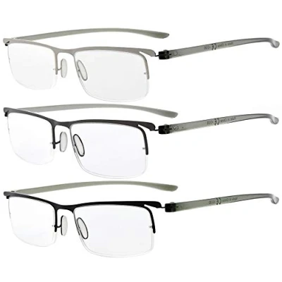Eyekepper 3 Pairs Half rim Reading Glasses Unique Design Frame Reader Eyeglasses for Men Women +1.50