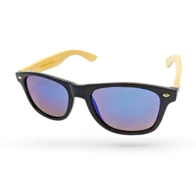 Eyelevel sunglasses conform to european Standard en iso 12312-1: 2013 Includes microfiber pouch for protection and cleaning Eyelevel Men's Echo Sunglasses, Black with Light Wood Bamboo Grey Polarized with Ice Blue Revo