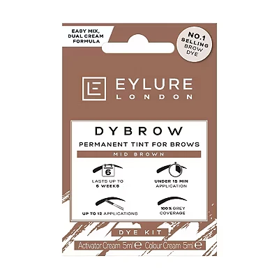 EYLURE DYBROW MID BROWN is a no.1 selling, cruelty-free brow dye with a dual cream formula for easy mixing and quick application in under 15 minutes. It delivers long-lasting, natural-looking results for up to 6 weeks and offers up to 12 uses per kit.
