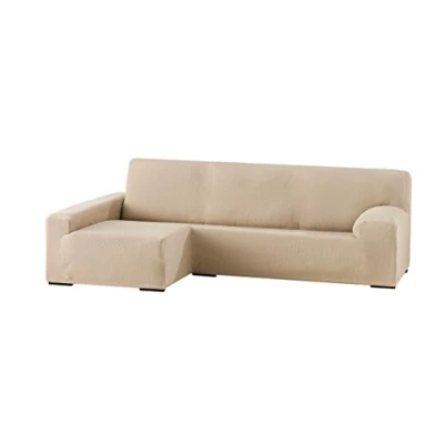 Eysa elastic sofa throw over chaise longue left, frontal view, polyester cotton, 01 beige, 90 x 240 280 155 cm