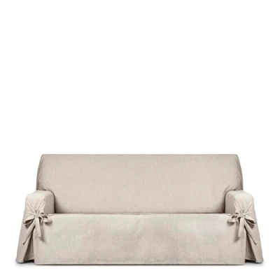 Eysa Genna Sofa Cover with Ties, Stain Resistant, 2 Seater Linen Colour