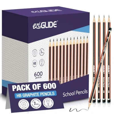 Superb quality : EziGLIDE HB Graphite Pencils are great for all your daily writing tasks, for note-taking, drafting and sketching. HB graphite pencils are also great designing and drawing pencils. Design : EziGLIDE's HB Pencils have a Hexagonal wooden barrel, making them easy to hold. The wood is specifically designed to prevent splintering, meaning they are easier to sharpen. Lead : EziGLIDE has worked on ensuring a break-resistant and super-bonded HB lead, robust for school environments and where dropping, tapping and bashing is inevitable! Great all round drawing and writing pencils for kids of all ages and can easily be stored in a pencil case. EziGlide Pencils HB are available in a range of pack sizes for Schools, Offices or at Home. Bulk Pack of 600 pencils, HB Graphite - Professional quality, great for artists of all ages with a smooth graphite unbreakable lead that makes writing, drawing and sharpening a breeze.