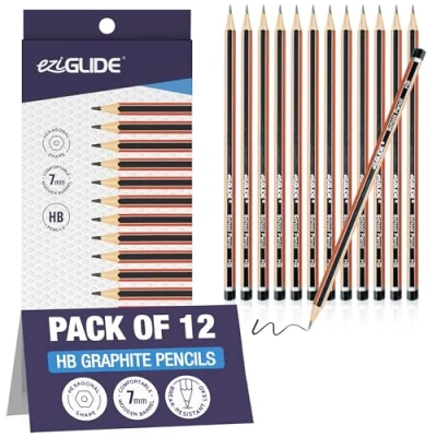 Superb Quality: EziGLIDE HB Graphite Pencils are great for all your daily writing tasks, note-taking, drafting designing and drawing and Sketching Pencils for School, Work and Home Design: Easy grip HB Pencil with hexagonal wooden barrel specifically designed to prevent splintering, making them easier to sharpen & compatible with all standard pencil sharpeners Graphite Lead Pencils: EziGLIDE has worked on an unbreakable pencil, ensuring a break-resistant & super-bonded HB lead, robust for school environments where dropping, tapping & bashing is inevitable! Versatile: Drawing & Writing pencils for kids of all ages used as right or left handed pencils. Pencils HB make a great carpenters pencil, builders pencil, art pencils, work pencils & school pencils 12 Pack of pencils, HB Graphite - Professional quality, great for artists of all ages with a smooth graphite unbreakable lead that makes writing, drawing and sharpening a breeze