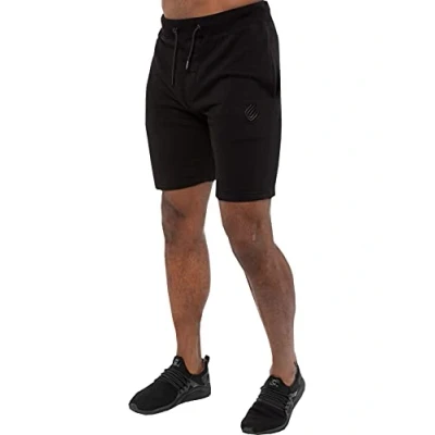 Enzo / Kruze Mens Regular Fit Fleece Shorts in Black, 50% Cotton, 50% Polyester, Elasticated Waist with Drawstring, Enzo Logo Embroidery on Leg, 2 Pocket Design, Machine Washable, Ideal for Autumn, Winter, Spring Seasons Wear Casually, Sports or Off leisure Occasions.