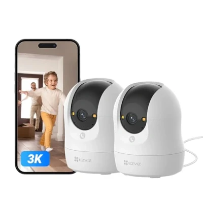 EZVIZ 2 Pack 3K WiFi Security Camera Indoor, 2026 350 Pan Tilt with Human Detection, Color Night Vision, Auto Tracking, Privacy Shutter, WDR, Alexa Google Home Compatible(C6N 2PK)