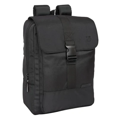 F.C. BARCELONA PREMIUM Laptop Backpack 13.3 Inch and USB with Flap, Ideal for Young People of Different Ages, Comfortable Versatile, Quality Resistance, 29 x 12 39 cm, Black, Black/White,