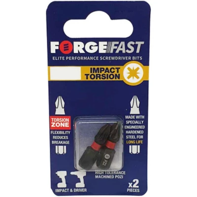 General description This Forgefix ForgeFast Pozidriv Compatible Impact Bit PZ3 x 152mm is designed for high torque applications, making it ideal for driving Pozidriv screws in various projects such as woodworking, construction, and home improvement. Made from specially engineered hardened steel, this impact bit offers increased wear resistance and durability, ensuring a long lifespan. Technical specifications Length: 152mm Size: PZ3 Type: Pozidriv Finish: Black Phosphate Pack Quantity: 1 MPN: FFBPZ3152C EAN: 5028485219729 Compatibility and accessories Compatible with Pozidriv screws Works with impact drivers and drills featuring a 1/4 inch hex chuck Installation Insert the impact bit into a compatible impact driver or drill with a 1/4 inch hex chuck Ensure the bit is securely fitted before use Usage Use for driving Pozidriv screws in woodworking, construction, and home improvement projects Apply high torque for demanding tasks, utilizing the shock-absorbing torsion zone for enhanced