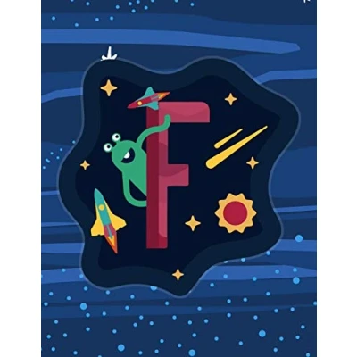 F: Monogram Initial F Notebook for boys 8.5" x 11" 100 pages, wide rule Space, Galaxy, Astronaut, Aliens