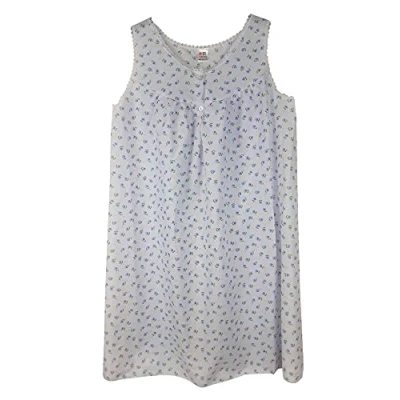 F & S LTD Ladies Women Printed Poly Cotton Sleeveless Nightdress UK Size 10 32 (White/Blue, 14 16)
