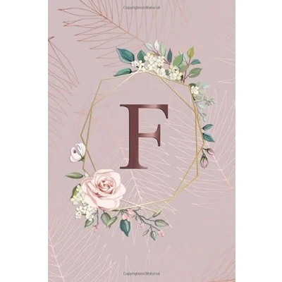 F: Tropical Rose Gold Medium Lined Notebook with Monogram Initial Letter F for Women & Girls Pretty Personalized Blank Floral Journal Diar