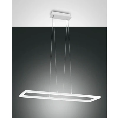 Dimmable LED pendant lamp Bard in elongated form The modern pendant lamp Bard consists of a white metal frame, which is attached to a suspension. At the lower end of the frame, powerful and at the same time dimmable LEDs are mounted behind a plastic cover. These emit their warm white light downwards without glare. Thus the pendant lamp Bard with its restrained white colour is perfectly suited for modern table lighting. Due to its minimalist design, it fits into many different furnishing styles.