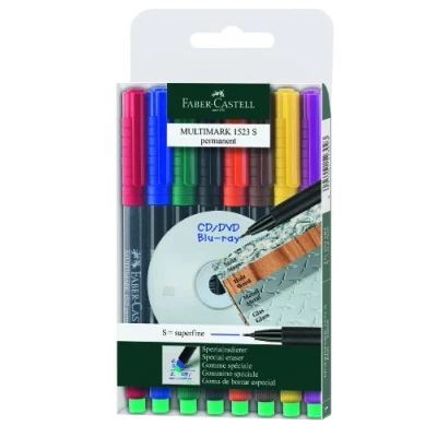 Pack of 8 thickness S for labelling CDs and DVDs not water-soluble one pen each in black, red, blue, green, brown, yellow, orange and purple