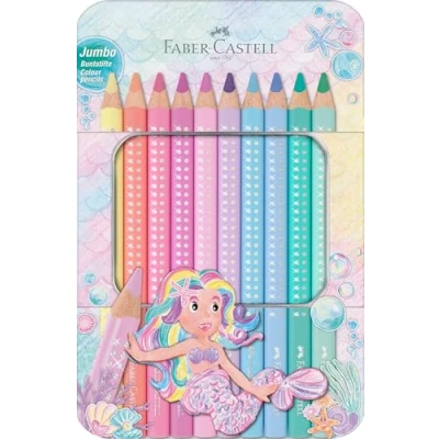 Faber Castell 210910 Jumbo Colouring Pencils Set Sparkle 10 Thick Pastel for Children