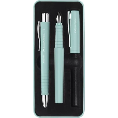 Elegant writing set: the poly pen gift set includes both a fountain pen with nib width B and a ballpoint pen with indelible ink High-quality ballpoint pen: equipped with a large capacity refill XB in blue, the ballpoint pen ensures smooth, precise writing performance ERGONOMIC DESIGN FOR COMFORTABLE WRITING Both writing instruments feature an ergonomic triangular grip zone and a non-slip soft touch surface that provides an effortless and enjoyable writing experience Elegant, robust design: the fountain pen and ballpoint pen impress with their elegant shape and the silver stainless steel clip, which completes the elegant look THE IDEAL GIFT: Presented in an elegant gift box, this stationery set is an optimal gift for anyone who values quality, style and functionality