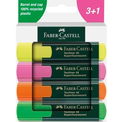 The Faber-Castell Textliner 48 Highlighter (Box of 4) features smudge-proof, super-fluorescent, refillable ink and a durable chisel tip for three line widths. Made from 100% recycled plastic, these eco-friendly highlighters deliver even color for students and professionals who value quality and sustainability.