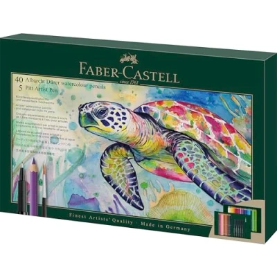 ALBRECHT DURER High-quality pencils, acid-free pigments in bright colours, offering unsurpassed lightfasness. Features fully water soluble lead, and soft, vibrant colour laydown. Essential art supplies for adult PITT ARTIST PEN Features pigmented, waterproof and permanent India ink. Offers high lightfastness. Pens have a reliable, even flow of ink, with the point gliding smoothly over the paper. Ink is archival quality. Suited to drawing, plans, layout work QUALITY Eco pencil. Made in Germany, wood from sustainable forestry. Presented in a lovely box. When looking for top-quality art product there really is nothing better than Faber-Castell supplies GIFT Faber-Castell Albrecht Dürer & Pitt Pen Gift Set, 46 Piece Set makes a perfect present for any artist, whether professional or hobby artist alike. Watercolour meets waterproof, with Albrecht Dürer & Pitt Artist Pen BRAND Faber-Castell is globally renowned and loved. They are a world leading manufacturer of top-quality, innovative art materials. Faber-Castell have become the go-to brand for artists for centuries, whether professional or hobby artist