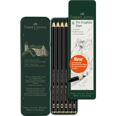 Faber Castell Art & Graphic Pitt Graphite Matt Pencil, Graphite, Tin Of 6, For Art, Craft, Drawing, Sketching, Home, School, University, Colouring