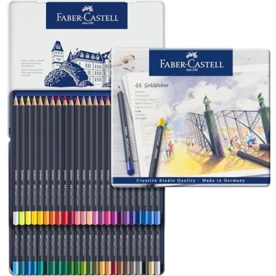 Faber Castell Creative Studio Goldfaber Colour Pencil, Multicoloured (Multicoloured) Tin Of 48 Pencils, For Art, Craft, Drawing, Sketching, Home, School, University, Colouring