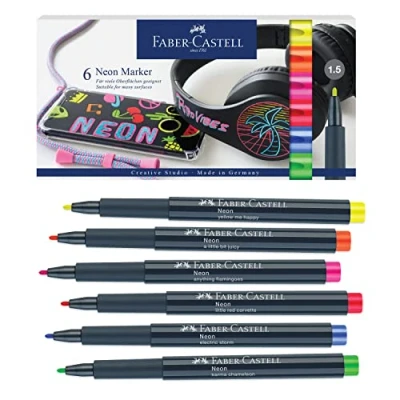 Faber Castell Creative Studio Neon Marker, Multicoloured, Cardboard Wallet Of 6, For Art, Craft, Drawing, Sketching, Home, School, University, Colouring