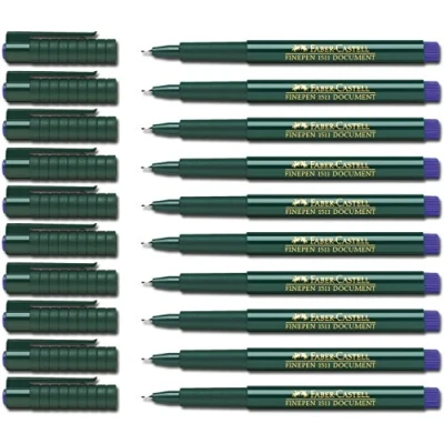 Faber Castell Fibre Pen, Fine Pen 1511, 0.4 mm, blue, 10 Stifte