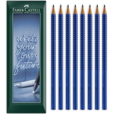 Faber Castell Grip 2001 Triangular Graphite Pencil B Grade Lead, Blue Barrel Envelope Gift Pack of 8 Pencils