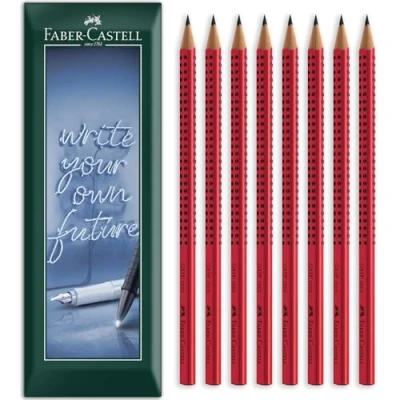 Faber Castell Grip 2001 Triangular Graphite Pencil B Grade Lead, Red Barrel Envelope Gift Pack of 8 Pencils