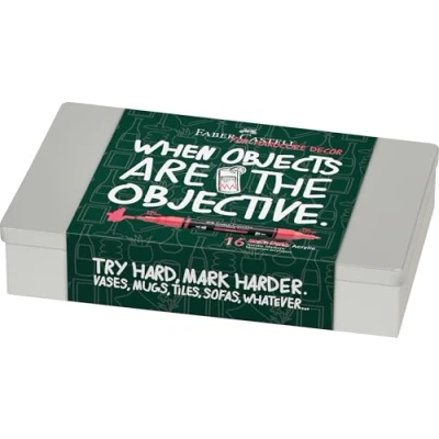 USE Meet the rebellious child of a noble family! Faber-Castell Multimark Acrylic Dual Marker draws on paper, metal, glass, wood and nerves. No surface is out of bounds with this new water-based acrylic ink marker. Essential art set supplies TIP Faber-Castell Acrylic double ended markers features a bold 2–3mm and fine 1-1.2mm tip. Round tips are replaceable. Ideal alternative to paint markers, ohuhu, posca, watercolour pens CREATIVITY Paint on multi-surfaces, these pens are not your usual Faber-Castell! Make something messy and creative with these acrylic brush and fine tip pens. Perfect for adult too. These pens carry an extended shelf like of 36 months RANGE Faber-Castell Multimark Acrylic Dual Markers are available in a great variety of 47 colours including brights, metallic and also an assortment of sets too. These pens make a great gift for any art enthusiast or creativity lover BRAND Faber-Castell is globally renowned and loved. They are a world-leading manufacturer of top-quality, innovative art materials. Faber-Castell have become the go-to brand for artists for centuries, whether professional or hobbyist