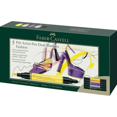 Faber Castell Pitt Artist Pen Dual Marker Fashion Wallet of 5, Coloured Pens, Drawing, Home Office, Art, Colouring