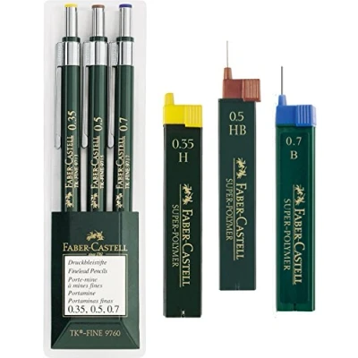 Faber Castell TK FINE 9760 136030 Set of 3 Mechanical Pencils Lead Thickness: 0.35 mm; 0.5 mm with 0.7 barrel colour: green. Eco Bundle H HB B