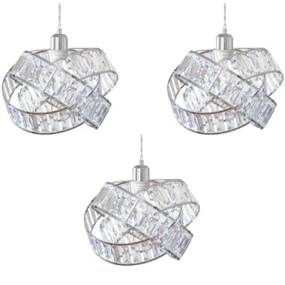 Transform your room with a touch of contemporary sophistication with our eye-catching statement lamp shade. This unique design is crafted with durable plastic panels that mimic the brilliance of crystal, delivering a sleek and glamorous look. The shade features three gracefully interwoven circular shapes, creating an artistic silhouette that instantly becomes the focal point of any space. Available in two colours, soft grey and clear , so you have a choice to pick from, to suit your home style.. Perfect for adding a stylish edge to living rooms, bedrooms, dining areas, or even entryways, this lamp shade is not only visually stunning but also highly functional. It’s designed for easy installation on pendant fittings, but please ensure your pendant wiring is compatible with the weight of the shade, which is approximately 1.04kg.. Product Highlights:. Available in 3 colours: Soft Grey, Clear and Gold. Modern Design: Features overlapping circular shapes with a crystal-like finish for a luxurious yet minimalist aesthetic.. High-Quality Materials: Durable plastic panels provide long-lasting beauty and a lightweight structure.. Size: Measures approximately 31cm in diameter and 23cm in height, making it an ideal fit for standard rooms.. Bulb Compatibility: Suitable for bulbs up to 60W, allowing for ample brightness while maintaining energy efficiency.. Upgrade your lighting and make a bold statement with this contemporary crystal-effect lamp shade. Whether you're refreshing your home décor or looking for a standout piece, this shade offers both style and practicality.