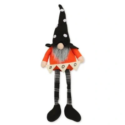 Add a unique feature to your Halloween decorations with a medium-sized Halloween Gonk. Featuring a knitted pointy orange hat with boo design, grey beard and black & white striped legs.. These Halloween gonks will look spooktacular with their legs dangling over any shelves, mantlepieces and windowsills. Perfect gifts for friends and family around Halloween.. Shop for more Halloween Gonks here.. Medium Halloween Gonk With Boo Hat. H x 43cm W x 20cm approx. Unique Halloween decoration. Plush felt material. Weighted body
