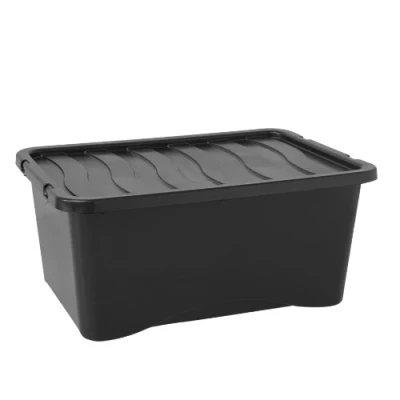 Get on top of your household clutter with this spacious black storage box with a lid. Perfect for storing towels, clothes, shoes, toys and more, this plastic storage box can be neatly stored away in a cupboard or under the bed. Available with a lid to keep your items safe and secure!. 1 x Black Plastic Storage Box With Lid 14L. Assorted Pack Sizes. Lid included. L 36cm x H 18cm x W 28cm x D 18cm (approx)