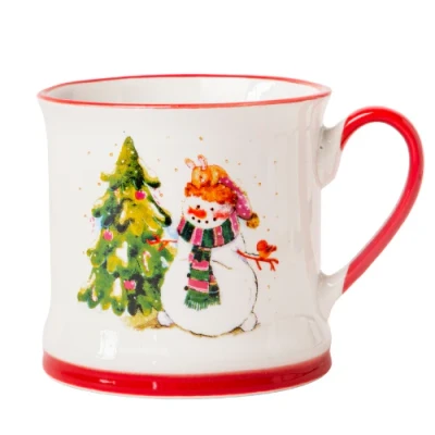 Celebrate the season with this 340ml festive ceramic mug, featuring joyful snowman illustrations and coloured rims. A cosy cup for coffee, cocoa, or holiday cheer.. 340ml capacity perfect for tea, coffee, or hot chocolate. Hand-painted style snowman illustrations on each mug. Durable ceramic with glossy finish. Red or green handle and base accents for a festive touch. Available in 4 assorted Christmas-themed designs. Dimensions: Approx 8.5 cm (H) x 8 cm (D)