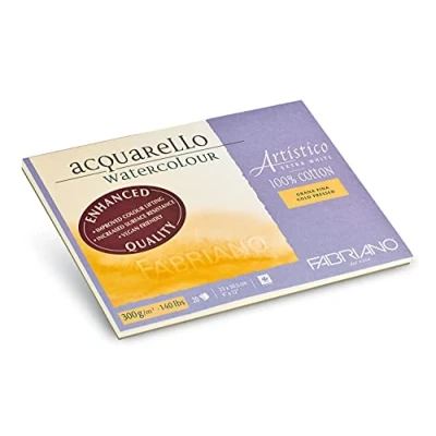 Fabriano Artistico Acquarello Watercolour, Extra White, fine Grain Cold Pressed, 23 x 30.5 cm, 20 Sheets 300 g/m², high Quality Artist Watercolour Cardboard, pad glued on 4 Sides, Vegan