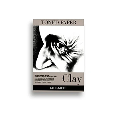 Fabriano Honsell 19100497 Toned Clay Drawing Pad, DIN A4, 50 Sheets, 120 g/m², Grey Paper with 15% Cotton Content, Natural Surface, for All Drying Techniques