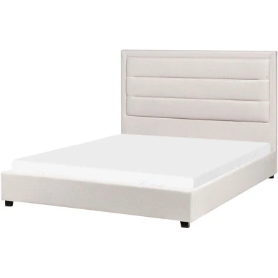 Fabric Bed with a Headboard EU Double Size 4ft6 Upholstered Light Beige Rouen