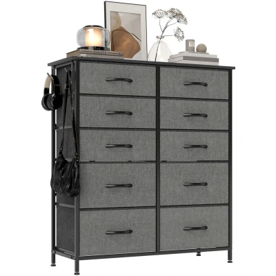 Fabric Chest of Drawers, 10 Drawer Dresser for Bedroom, Charcoal Grey Homcom