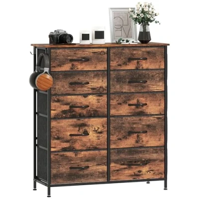 ManoManoGeneral description The HOMCOM Fabric Chest of Drawers is a stylish and functional addition to any bedroom. With its rustic brown finish, this 10-drawer dresser offers ample storage space while enhancing your decor. The fabric drawers are designed for easy access and organization, making it perfect for storing clothes, accessories, and other personal items. Other information