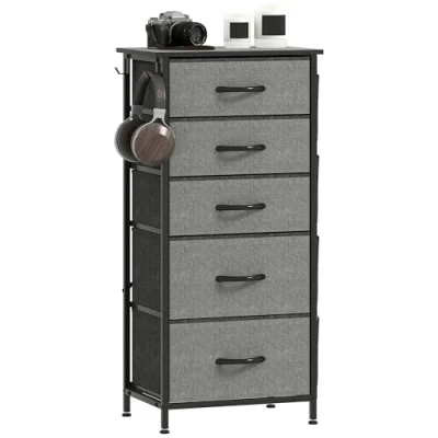 Fabric Chest of Drawers, 5 Drawer Dresser for Bedroom, Charcoal Grey Homcom