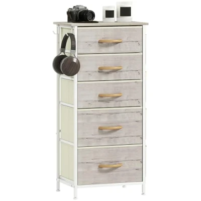 Fabric Chest of Drawers, 5 Drawer Dresser for Bedroom, Natural Wood Homcom