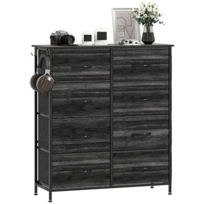 Fabric Chest of Drawers, 8 Drawer Dresser for Bedroom, Black Homcom
