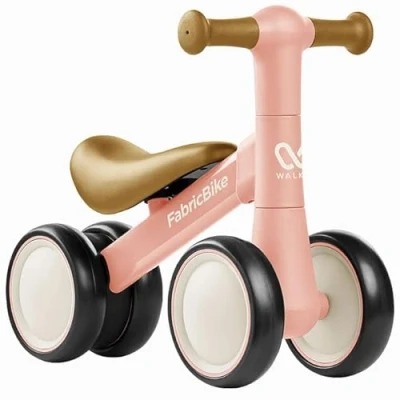 FabricBike Walker Baby Balance Bike 1 Year Old, Toddler for 10 24 Months, No Pedals, Ride On Toys Boys & Girls, with 4 Wheels. (Sweet Pink)